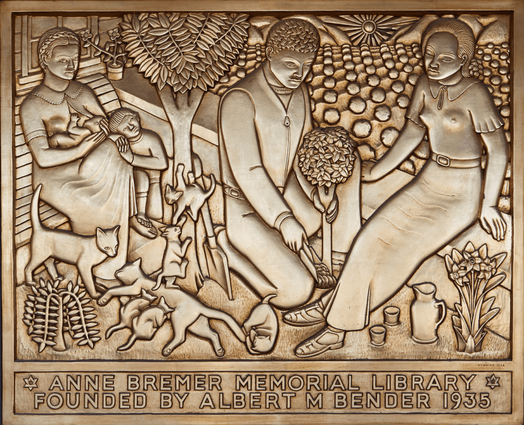 In 1935 this “dedicatory relief” was installed above the library fireplace: