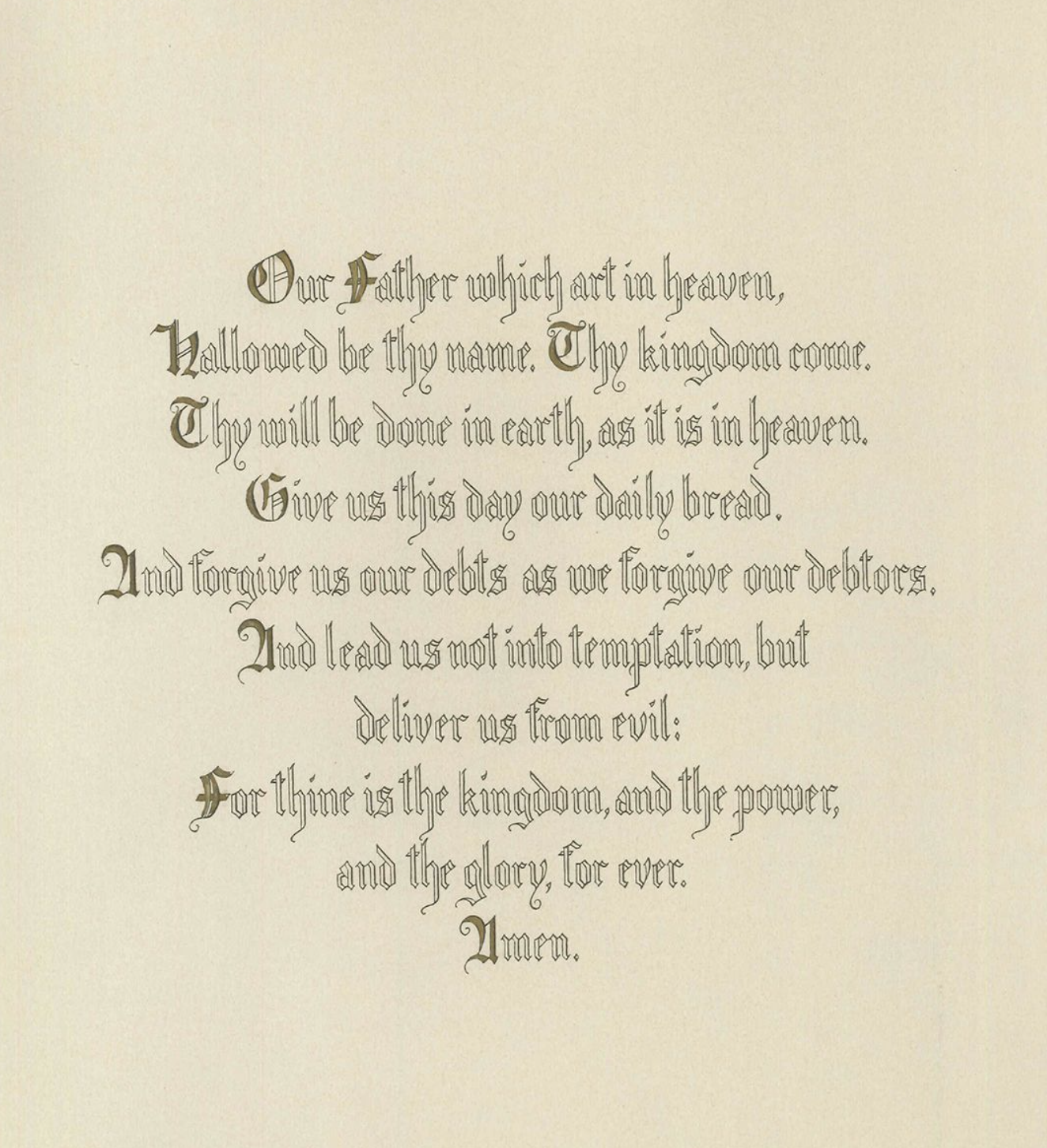 A few of the letterpress items Bender had printed at Grabhorn and other presses were labeled as Christmas offerings, including the Lord’s Prayer printed by J. H. Nash in 1939—a decidedly un-Jewish choice. Here is what it looked like: